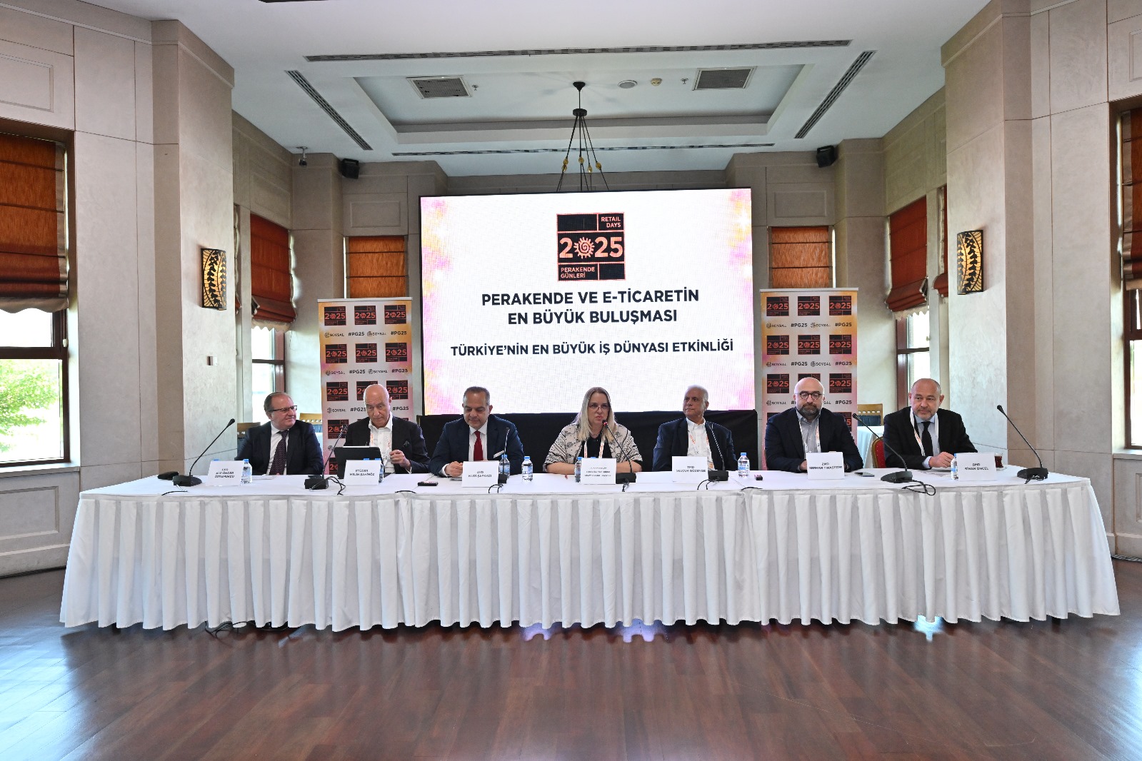 Perakende Günleri 2025’in açılışı dolayısıyla düzenlenen basın toplantısında Gıda Perakendecileri Derneği (GPD) Yönetim Kurulu Başkanı Alp Önder Özpamukçu, Birleşmiş Markalar Derneği (BMD) Başkanı Sinan Öncel, Alışveriş Merkezleri ve Yatırımcıları Derneği (AYD) Yönetim Kurulu Başkanı Nuri Şapkacı, Ev Dışı Tüketim Tedarikçileri Derneği (ETÜDER) Yönetim Kurulu Başkanı Melih Şahinöz, Zincir Mağazalar Derneği (ZMD) Yönetim Kurulu Başkanı Serhan Tınastepe ve Taklitle Mücadele Derneği (TMD) Başkanı Selçuk Güzenge perakende sektörünün mevcut durumunu, sorunları ve çözüm önerilerini ele aldı.