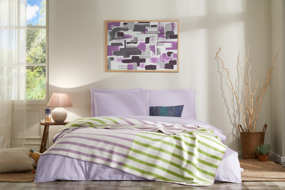 Lana battaniyeler, benzersiz tasarımlarıyla evinize görsel bir şölen katarken renk değişimleriyle de odaların atmosferini anında canlandırıyor. Estetik zenginliğiyle, ev dekorasyonunun vazgeçilmez parçası haline geliyor.
