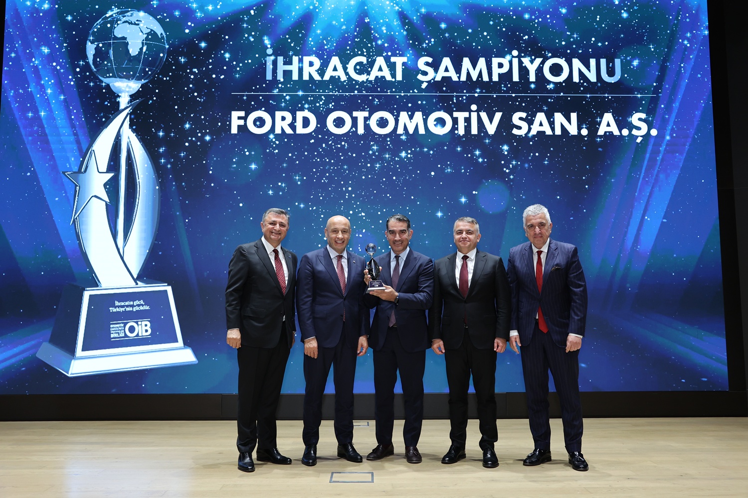 Uludağ Otomotiv Endüstrisi İhracatçıları Birliği (OİB) tarafından düzenlenen İhracatın Şampiyonları Ödül Töreninde 2024 yılının en başarılı kuruluşları ödüllendirildi. Geçen yılın ihracat şampiyonu Ford Otomotiv olurken, gecede son 19 yılda 18 kez Türkiye ihracatının lider sektörü olan otomotivde en fazla ihracat gerçekleştiren ilk 138 firma Platin, Altın, Gümüş ve Bronz kategorilerde ödüllere layık görüldü.