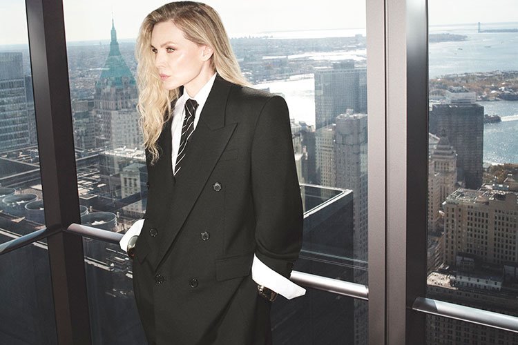 David Sims tarafından fotoğraflanan Pfeiffer, şu ana kadar yayınlanan fotoğraflarda iki ikonik görünümü sergiliyor: Saint Laurent’in imzası olan sofistike minimalizmi yansıtan şık siyah bir takım elbise ve erkekliği kadınsı bir bakış açısıyla yeniden tanımlayan gri bir takım.